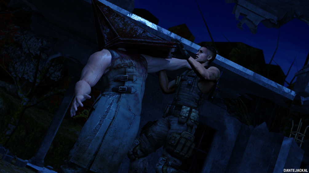 Two universes collide as Resident Evil's Piers Nivans meets Silent Hill's Pyramid Head... who quickly over powers the BSAA soldier and gives him a first encounter he'll never forget!