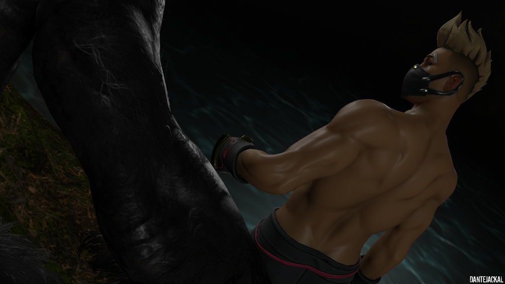 With a full moon brings about a new monstrous addition to the DanteJackalUniverse and Drift is soon met face to face with a Werewolf! Who having picked up his scent is keen to turn this Battle Royale warrior into his mate, has Drift got enough energy left to fight of a wolf or will he be 'tied' down to take everything the wolf has to offer! Only time will tell!