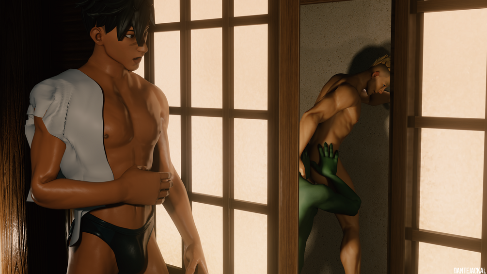 After their latest Battle Royale match, the players all hit the spa for a well earned break. But when Stray hears what sounds to be Drift moaning, he goes for a closer look. What he finds, shocks him and turns him on as he sees Beast Boy enjoying the object of his affection!